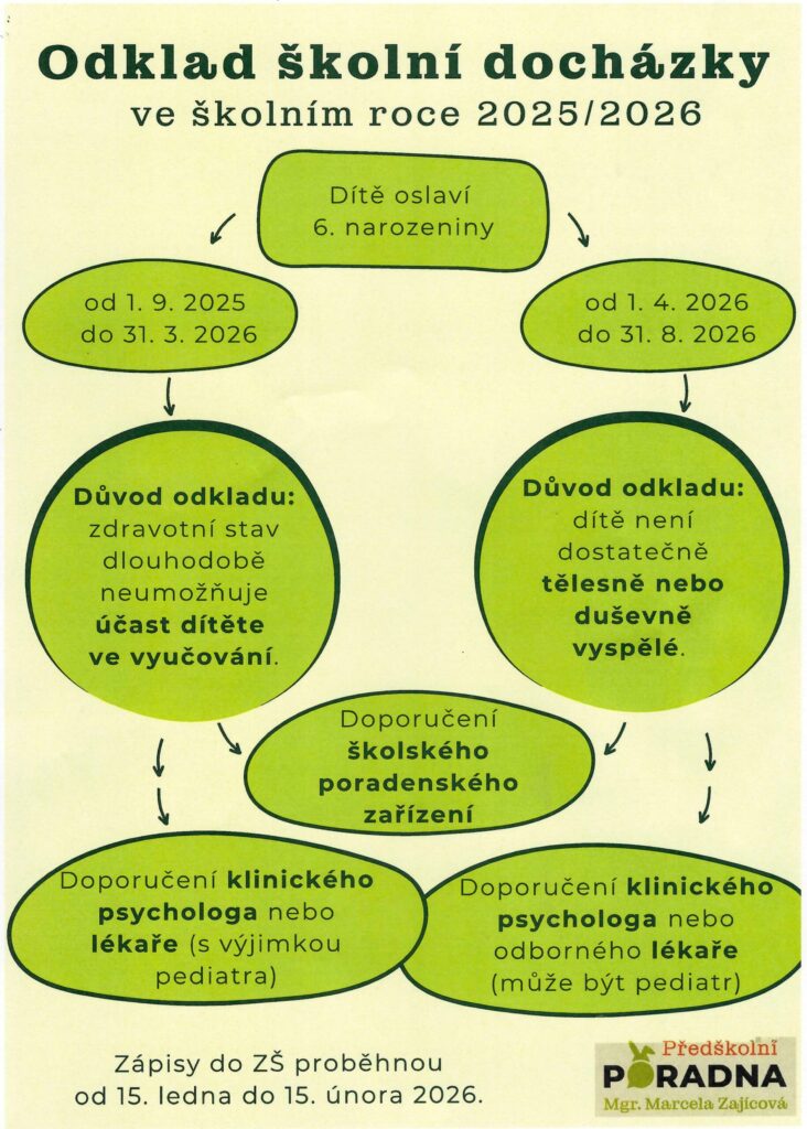 Informace MŠMT: ODKLAD povinné školní docházky v roce 2026